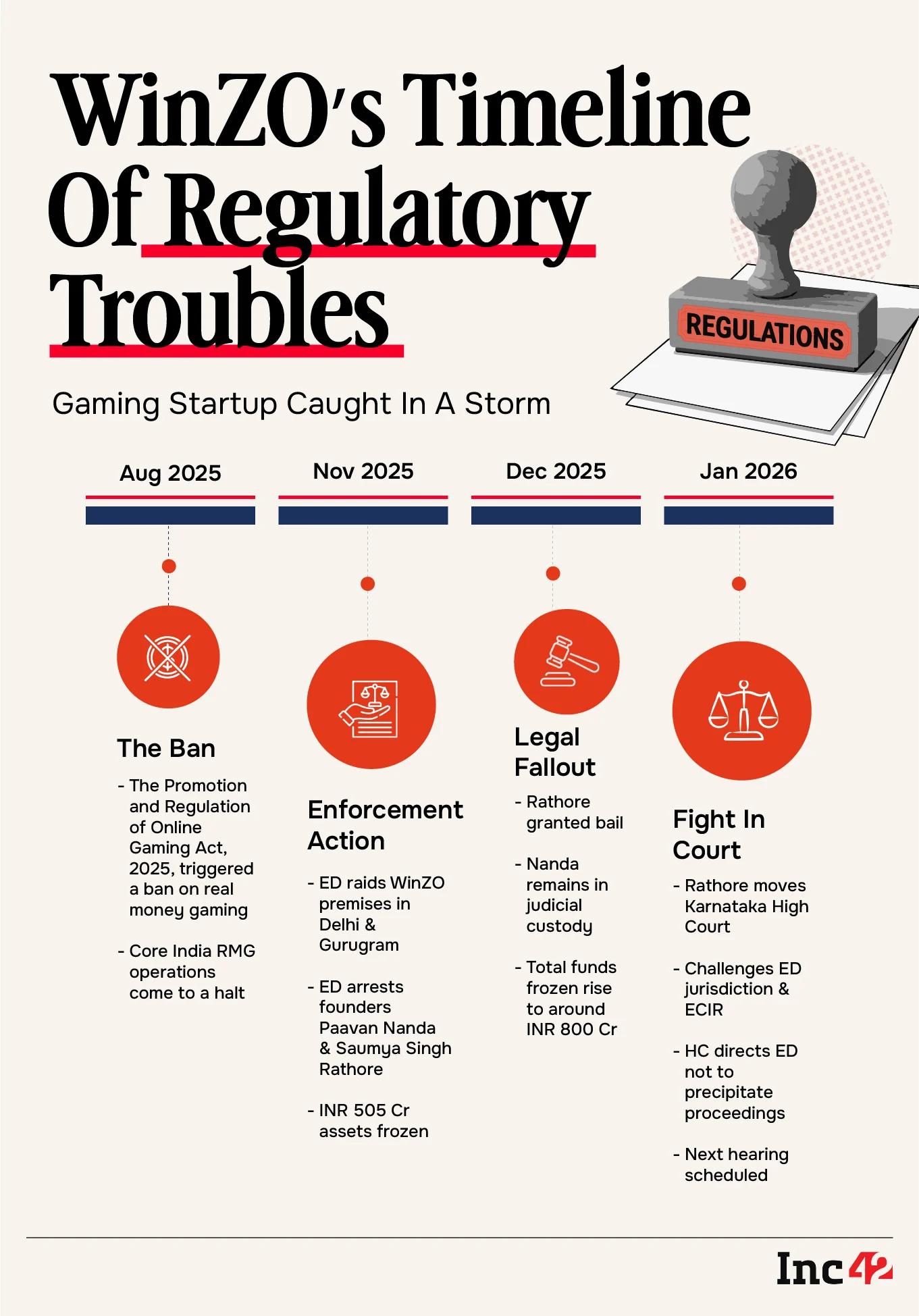 The probe was initiated on the basis of multiple FIRs registered by police authorities in Karnataka, Rajasthan, Delhi, and Gurugram for alleged cheating. Subsequently, during search operations carried out in November and December 2025, the ED froze WinZO’s assets worth approximately INR 690 Cr, which it identified as proceeds of crime. The frozen assets included bank balances, bonds, fixed deposits and mutual fund investments.
